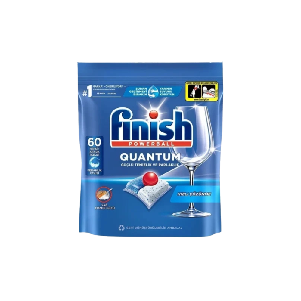 فنش باوربول كوانتم يقدم تنظيفًا عميقًا ولمعانًا رائعًا دون الحاجة إلى الشطف المسبق. . بفضل التقنية الثلاثية، يزيل الدهون وبقايا الطعام الصعبة والضباب عن الأواني.
